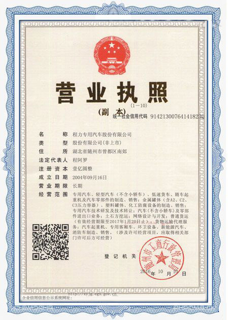 程力專(zhuān)用汽車(chē)股份有限公司各類(lèi)專(zhuān)用汽車(chē)的專(zhuān)業(yè)廠家,大型專(zhuān)用汽車(chē)廠。國(guó)內(nèi)園林綠化、石油化工、市政環(huán)衛(wèi)、壓力容器專(zhuān)用汽車(chē)商。注冊(cè)“程力威”牌,產(chǎn)品代碼:“CLW”。東風(fēng)、解放、福田、重汽、陜汽、北奔等公司的重要合作伙伴,主要從事各類(lèi)專(zhuān)用汽車(chē)的業(yè)務(wù),同時(shí)也銷(xiāo)售各大型廠家的整車(chē)及配件。公司擁有自行出口權(quán),其主導(dǎo)品種有灑水車(chē)系列、吸污(吸糞)車(chē)系列、垃圾車(chē)系列、掃地車(chē)系列、油罐加(運(yùn))油車(chē)系列、高空作業(yè)車(chē)系列、清障車(chē)系列、隨車(chē)吊系列、自卸車(chē)系列、教練車(chē)系列、半掛車(chē)系列、化工車(chē)系列、消防車(chē)系列、廂式(冷藏車(chē))系列、牽引車(chē)系列、粉粒物料車(chē)系列、攪拌車(chē)系列、壓力容器系列、專(zhuān)用車(chē)配件等十八大系列300多個(gè)品種車(chē)型。同時(shí)批發(fā)東風(fēng)、解放、楚風(fēng)各種二類(lèi)底盤(pán)。